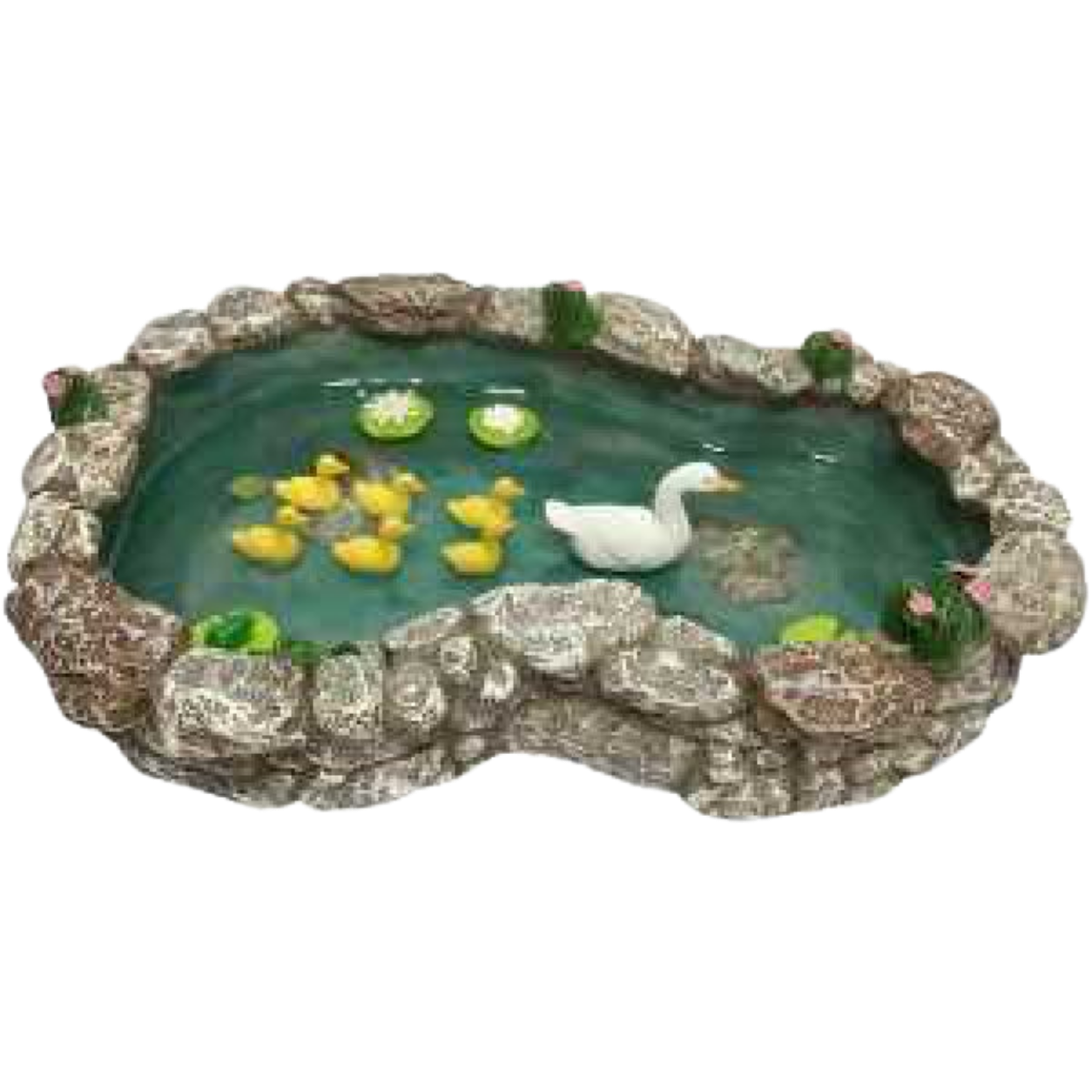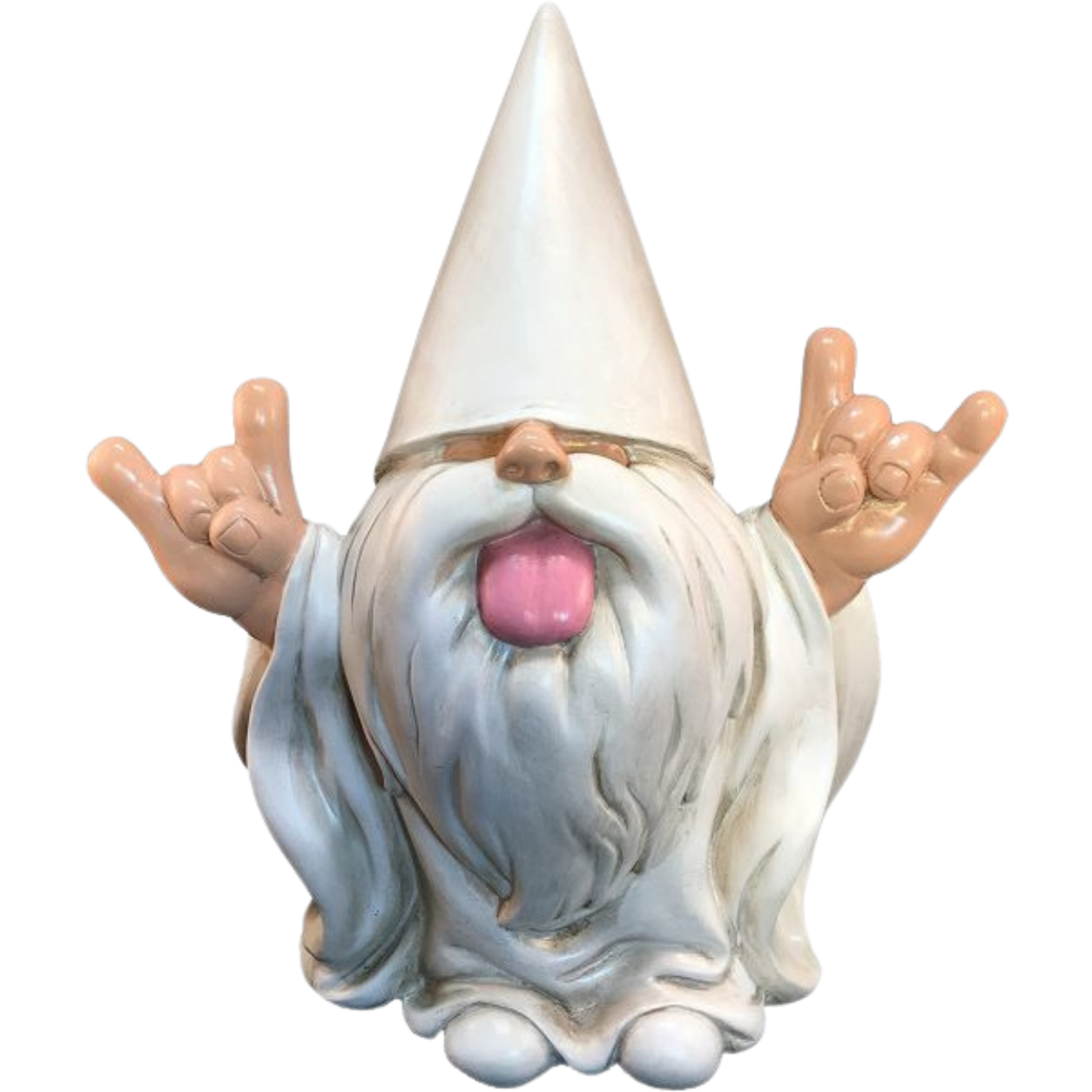 Gnome projecting tranquility and peacefulness, Rocker Gnome the party master, Duck Pond, Wishing Well, Katrina and the musical fairy
